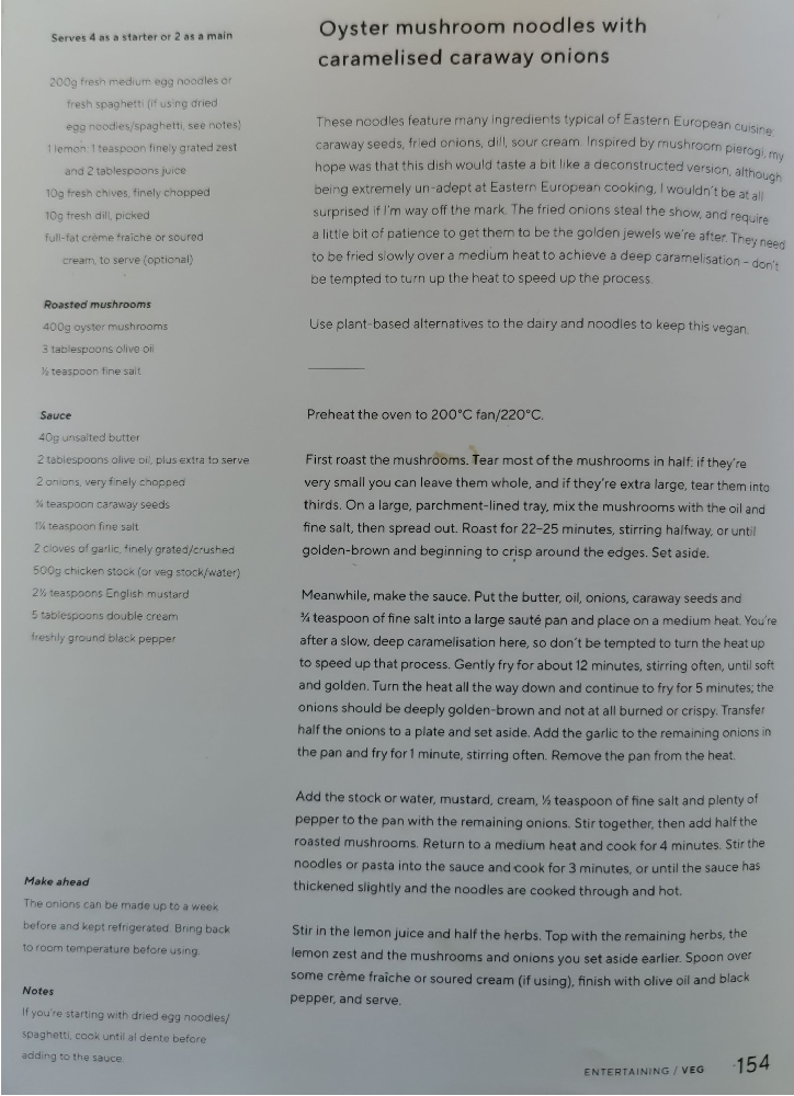 Oyster mushrooms noodles with caramelised caraway onions x2